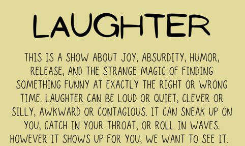 Laughter Intake Friday, April 3, 2026 3:00 PM 7:00 PM 15:00 19:00 Galleries at Lynnarts 25 Exchange Street Lynn, MA 01901 USA (map) Google Calendar ICS Bring your work in to the Galleries to be shown in our next exhibit “Laughter”.